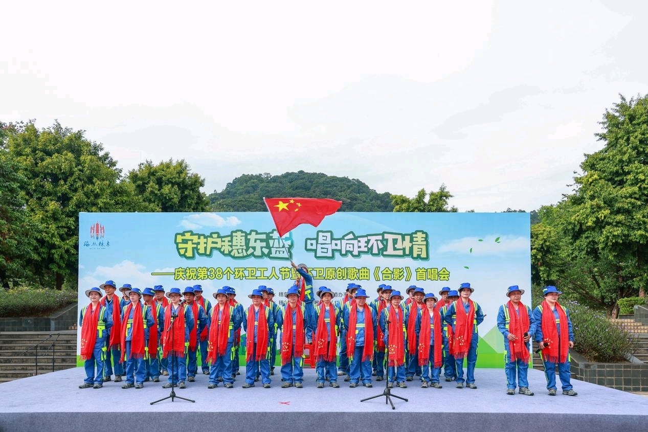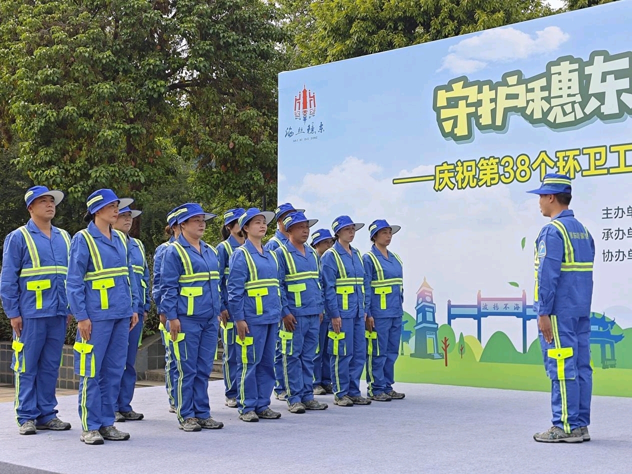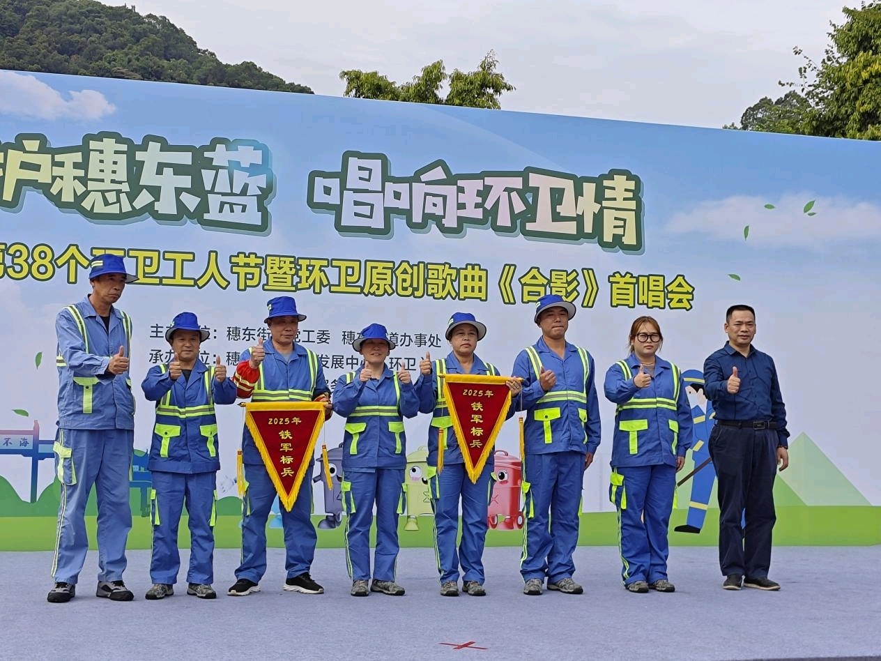 为热烈庆祝第38个环卫工人节,10月24日,黄埔区穗东街道在龙头山森林公园举办 “守护穗东蓝涨8,唱响环卫情” 主题活动,200余名环卫工人齐聚一堂,在属于自己的节日里,收获荣誉、绽放风采、感受温暖。此次活动由穗东街道党工委、街道办事处指导,街道党群服务中心协助开展,旨在向常年坚守城市美容一线的 “城市护卫者” 致以崇高敬意与节日问候,以庆典形式礼赞环卫工人的无私奉献精神,营造感恩环卫、尊重劳动的浓厚氛围。