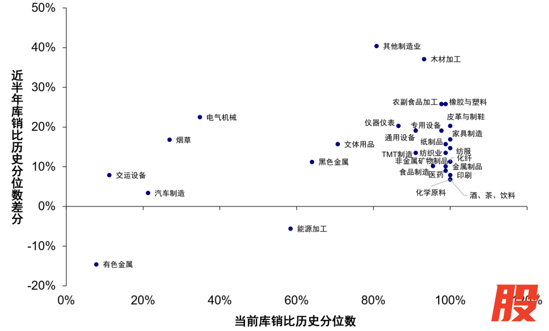 图表:29个制造业行业库销比来看,中下游仍面临相对需求不足问题