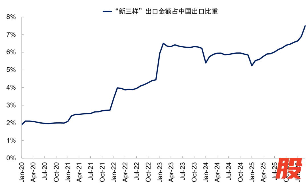 图表:“新三样”出口金额占整体出口比重不断上升