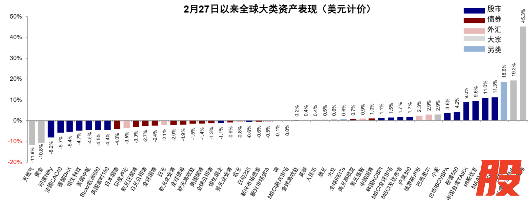 伊朗局势爆发以来,全球权益市场在经历短期冲击后快速完成修复,全球多数市场都已经“收复失地”,纳斯达克和创业板指更是早早创出新高,这也反映市场对伊朗局势逐步脱敏。