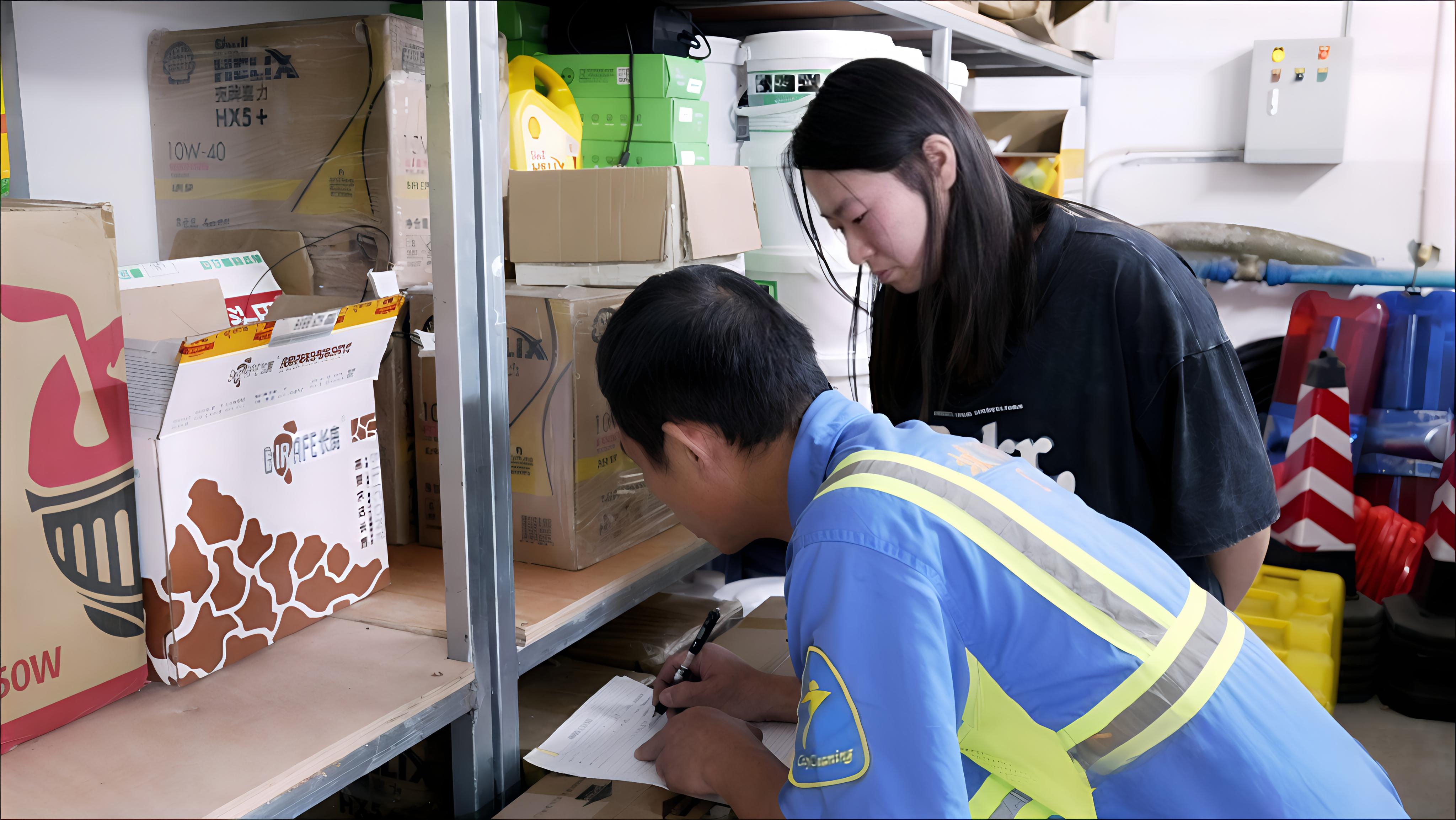 尹勉才的女儿尹瑞在2020年也加入了环卫行业,不同于家人奔波在马路上守护城市整洁,她的“战场”在一方小小的工位上,用耐心和细心做好环卫后勤保障工作。在物资发放方面,小到一支笔,大到环卫车辆的配件,每一次的出入库都被她清晰地登记在册;在票据收集方面,不管是维修还是加油,所有的单据都被一一整理归类。这些看似琐碎简单的日常,在她严谨细致的态度中,形成了保障一线作业顺利运转的桥梁。